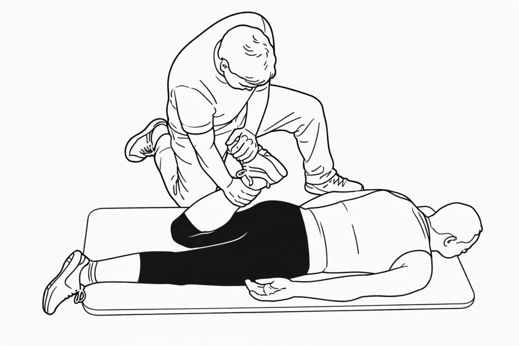 This exercise is particularly suitable after training, when blood flow to the legs is increased and the muscles are already warm. It serves both as a relaxation drill and as an effective stretch for the quadriceps muscle group, targeting all four heads of the quadriceps.